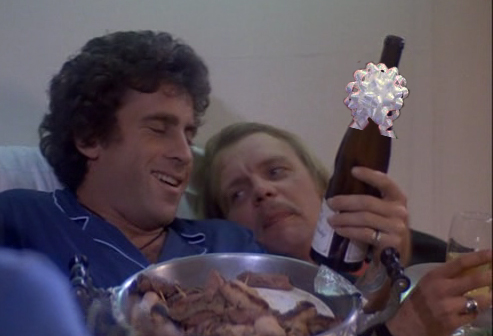 Hearing Hutch coming up the stairs, Starsky raced back to the turntable, tucking the fruit he’d grabbed into the branches of the Ficus. As Hutch came through the door, Starsky placed the needle on the correct groove.