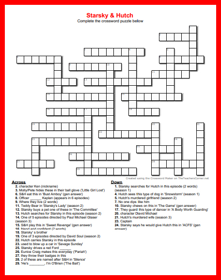 This is my first Starsky and Hutch crossword puzzle and I had a blast doing it! It was challenging but super fun, so thank you!